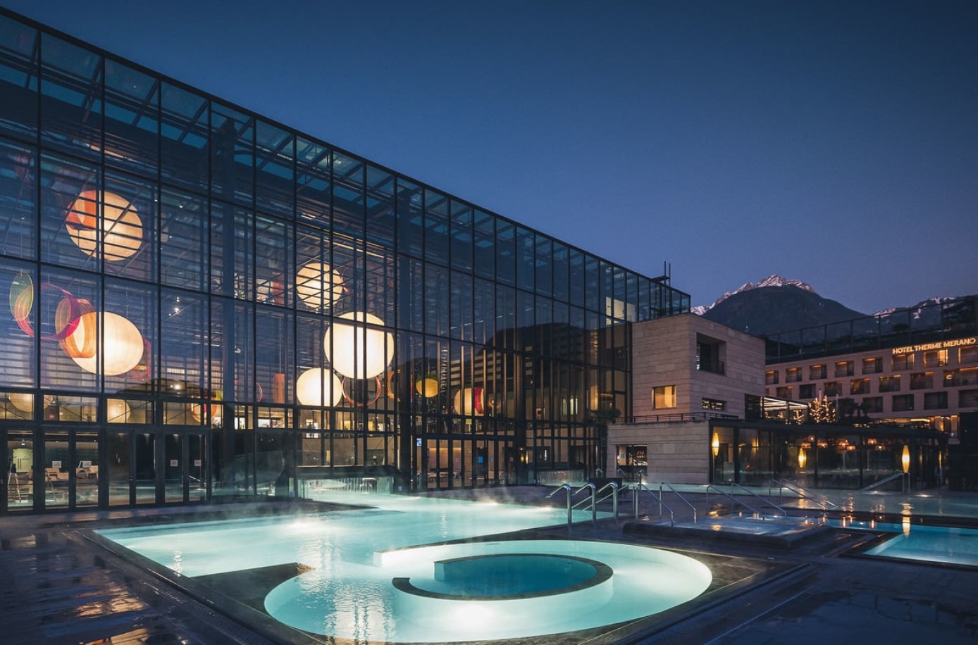 Nach zwei erholsamen Nächten im Stadele genießen Sie die entspannte Atmosphäre in der Therme Meran – nur wenige Minuten von uns entfernt.