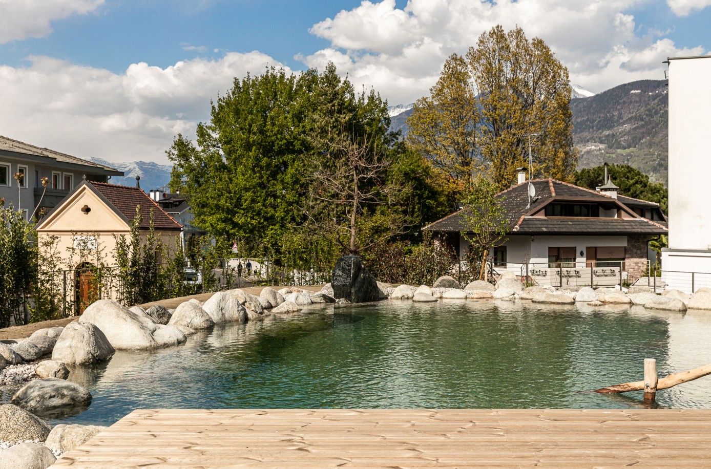 At Stadele we like to do without chlorine and chemicals. That is why we have created a natural bathing lake in front of the house with wonderfully fine loungers and a self-service-bar. The view sweeps over the Merano countryside and its mountains. Holidays can be so relaxing - because you really deserve rest and relaxation. The best thing about it? A lot of space for very few people.